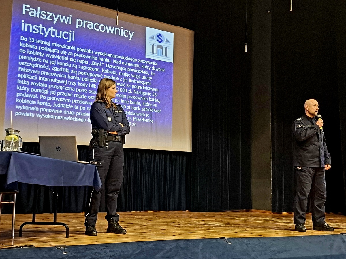 Policjanci z wysokomazowieckiej jednostki przeprowadzili debatę społeczną pod nazwą „Porozmawiajmy o bezpieczeństwie - możesz mieć na nie wpływ!”. Spotkanie z mieszkańcami miasta i gminy Szepietowo miało na celu zacieśnianie współpracy policji ze społecznością lokalną oraz stanowiło doskonałą okazję do dyskusji i zgłaszania aktualnych problemów, które występują na terenie miasta. Podczas spotkania poruszono najważniejsze kwestie dotyczące bezpieczeństwa. Policjanci omówili problematykę oszustw. Przedstawili mechanizmy działania oszustów oraz apelowali o rozsądek podczas podejmowania wszelkich decyzji finansowych. Mundurowi przypomnieli również zasady funkcjonowania „Krajowej Mapy Zagrożeń Bezpieczeństwa”, stanowiącej wsparcie policji na rzecz diagnozowania aktualnych zagrożeń. Poruszono również tematykę nowo wprowadzonych zmian w przepisach ruchu drogowego. Debata była doskonałą okazją, aby porozmawiać z mieszkańcami o istniejących wokół nich zagrożeniach oraz sposobach ich unikania i eliminowania.